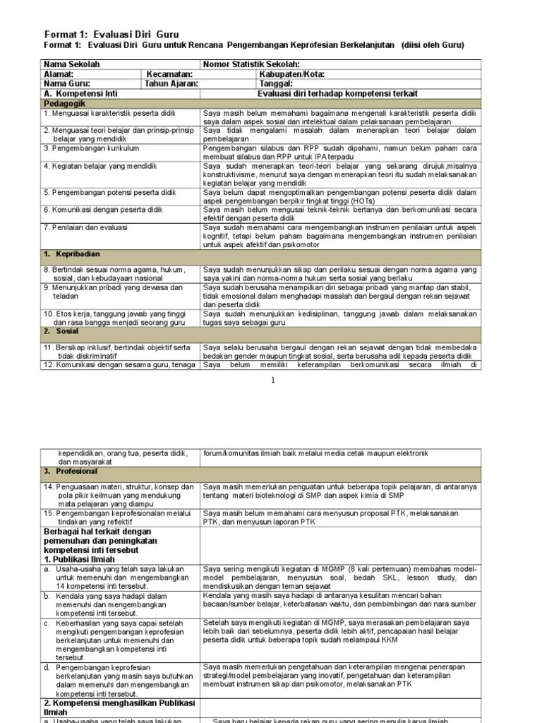 Evaluasi diri guru untuk rencana pengembangan keprofesian berkelanjutan (diisi oleh guru).