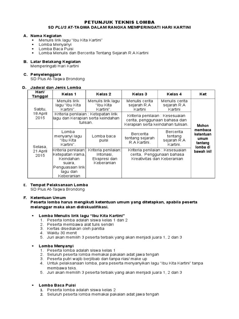 2) penilaian gambar bercerita dengan format sbb: Alat atau medium menggambar juga menjadi kriteria penilaian. Peserta wajib menggunakan pakaian adat bali. Keputusan dewan juri tidak dapat diganggu gugat. Kesesuaian gambar dengan tema, 5, 10 · 2. Artistik, 20, 30 · 3. "orisinalitas dan kemampuan peserta dalam menguasai alat atau medium menggambar juga menjadi kriteria penilaian. Desain motif batik dibuat diatas kertas gambar ukuran 40 x 60 cm. Sebagai sarana meningkatkan minat siswa dalam mengikuti kegiatan menggambar, maka diadakan sebuah kompetisi malalui lomba gambar bercerita yang dilaksanakan di . Penghapus dan peraut pensil kriteria penilaian 1. 1 gambar dan isi cerita sifatnya mendidik sesuai dengan norma kesusilaan dan tidak bertentangan dengan unsur paras . Gambar bercerita adalah gambar yang memiliki narasi yang tujuannya. Kriteria penilaian lomba gambar · 1.